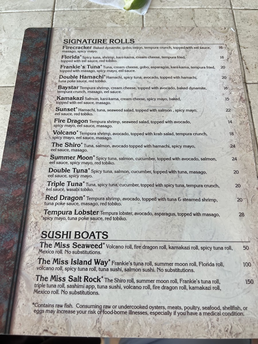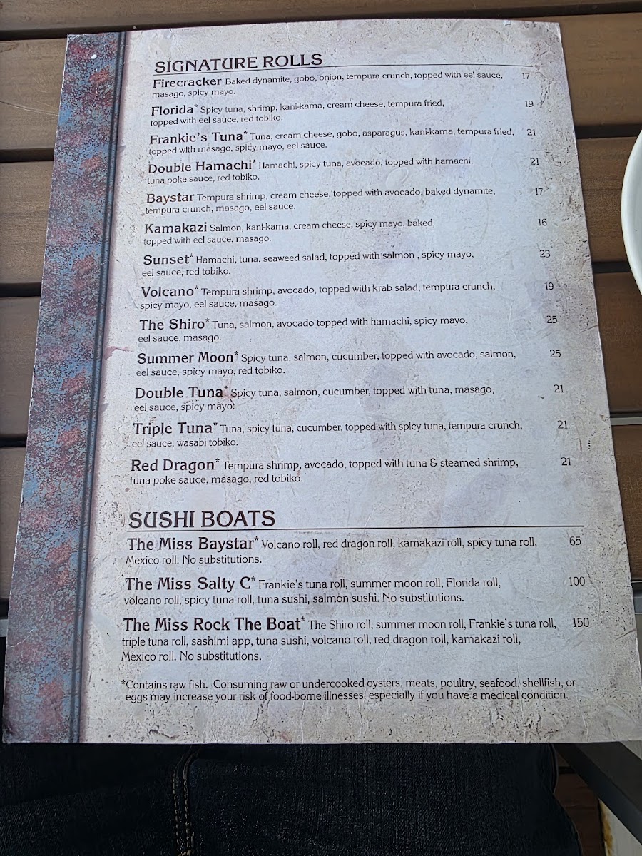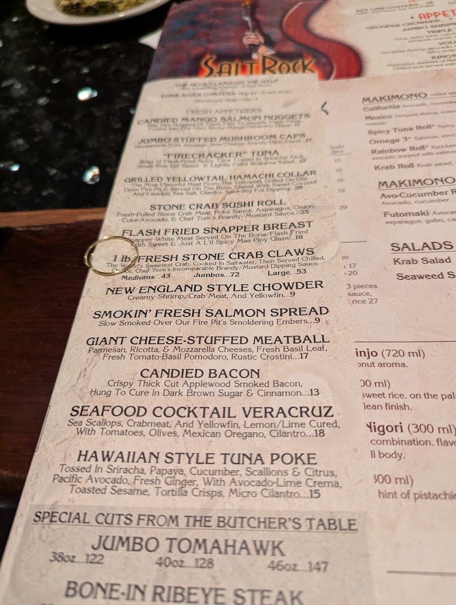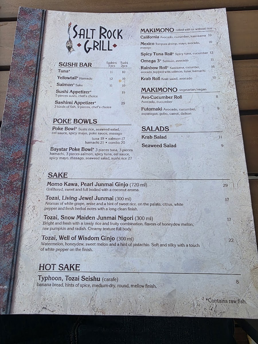 The menu at Salt Rock Grill offers a diverse selection of seafood, steaks, and bar favorites, carefully organized into several main categories to cater to a variety of dining preferences. Guests can begin with appetizers such as Grouper Chowder, Lobster Bisque, Jumbo Shrimp Cocktail, and marinated skewers combining filet mignon, chicken, and pork tenderloin. These starters set the stage for a meal focused on fresh and flavorful ingredients.